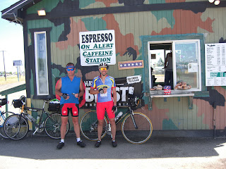I persuaded Chuck and Tony to make a stop on the way into Spokane at the Airway Heights Espresso stand. It is one that the RedSpoke riders frequent every year. It would have been hard for me to ride past and not order a drink. If any members of the RedSpoke family are reading this, know that I have given the stand fair warning of your arrival on a sunny Sunday, mid-July.